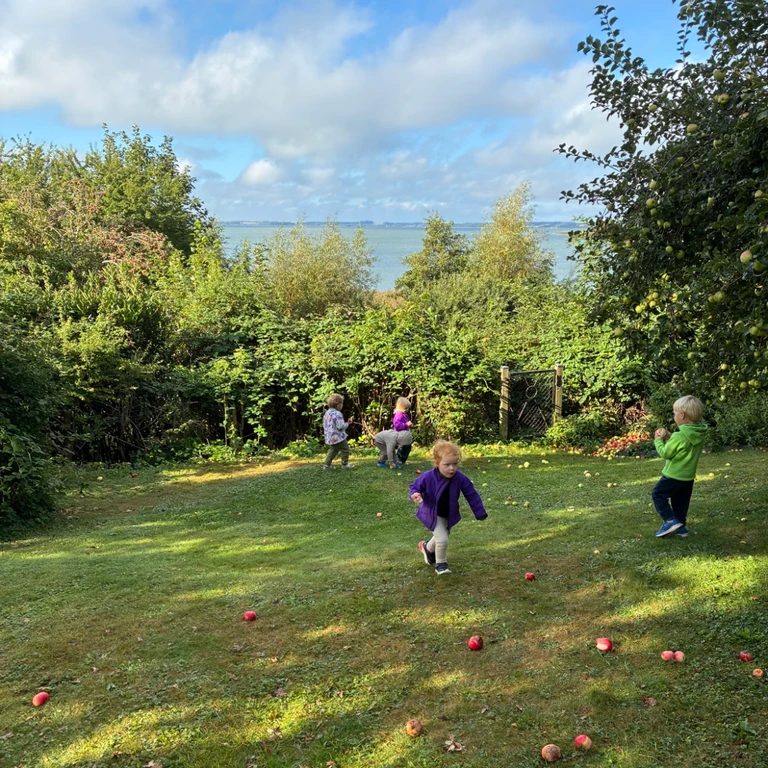 Som naturinstitution tilbringer vi, i børnehaven, det meste af tiden udenfor. Vi har en dejlig legeplads, med store hasselnøddebuske og frugttræer. Vi bruger vores nærområde til gåture, hvor vi blandt andet nyder Garbolunds fine sommerfuglesti, besøger køerne, kigger på store maskiner på gården for enden af vejen og ser Arresøs forandring efter vejr og årstid.